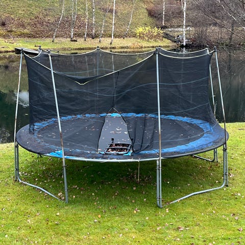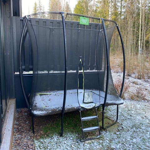 Suoraan käytöstä. Yksi reikä verkossa, näkyy kuvassa. Kaikki osat tallella, reunamatto ei kuvassa mukana.