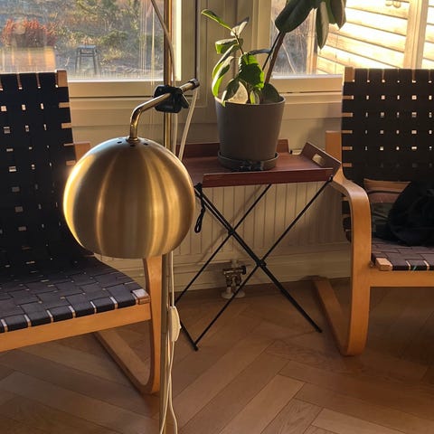 Myydään kaareva lattiavalaisin, tyylikäs ja siisti.