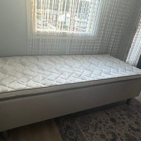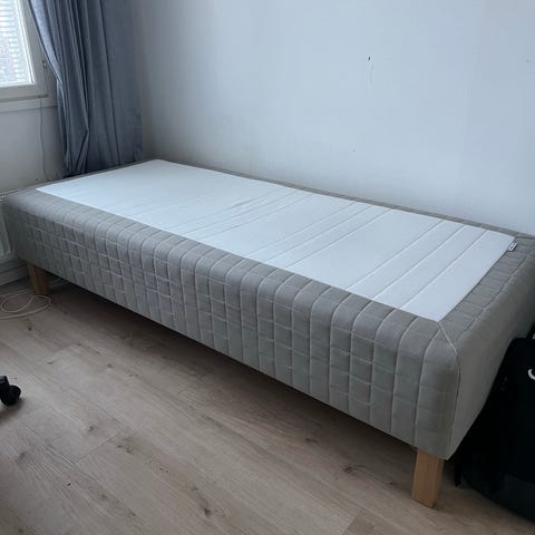 Myydään Ikean runkopatja jaloilla 90x200 cm. Hyvässä kunnossa. Pehmeä sänky.