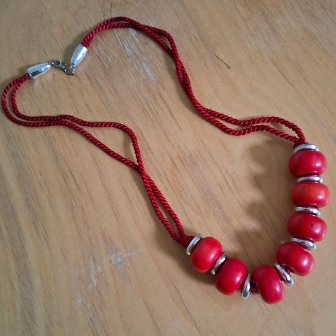 Kuvan mukaiset helmet ja rannekoru. Pientä jälkeä hieman näkyvissä. On huomioitu hinnassa. Kuitenkin perussiisti ja käyttökelpoinen. Sävy turkoosiin vivahtava.