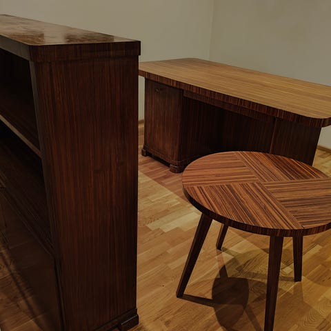 Suomalaisen puuhuonekalutuottajan Nikarin Architecture-kokoelman sirot koivuiset pukkijalat, jotka sopivat työ- tai ruokapöydän alle (olen käyttänyt molemmissa). Suunnittelija: Kari Virtanen.
