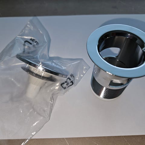 Vieserin käyttämätön pesualtaan erikoisvesilukko 32mm kromatulla tulpalla.