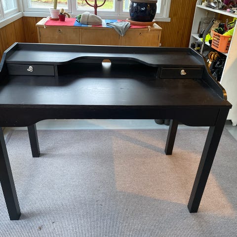 On pari naarmua pöytälevyllä (kuvassa), muuten hyvin toimiva. Laatikoissa on aika paljon tilaa (avoimet laatikot kuvassa)