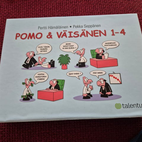 Pomo & Väisänen kirjasarja, joka sisältää neljä osaa: Pomo & Väisänen 1-4, Taukoiltkuntaa, Samassa veneessä ja Raha puhuu. Kirjat ovat suomenkielisiä ja sisältävät sarjakuvamaisia kuvituksia.