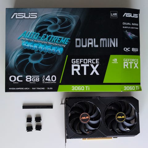 Asus GeForce RTX (DUAL-RTX3060TI-8G-MINI-V2) näytönohjain.