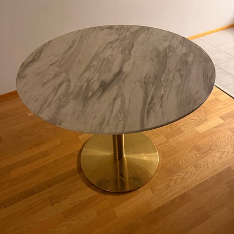 Tästä tyylikäs ruokapöytä kotiisi. Gordon ruokapöydän kansi on marmori jäljitelmää. Kannen alapinta ja jalka tammen sävyiset.