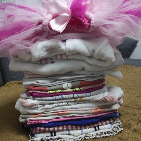 Tytön jo reilummin käytettyjä vaatteita koossa 92-104.