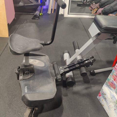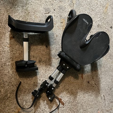 Seisontalauta jossa kiinnitysmekanismi joka käy useimpiin lastenrattaisiin. Kulunut mutta täysin toimiva