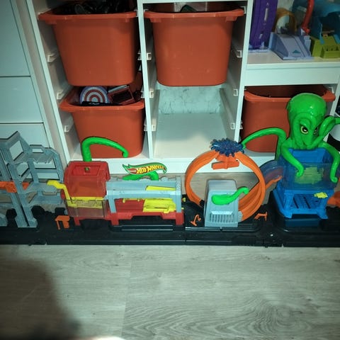 Iso hot wheels autorekka. Tänne mahtuu paljon autoja kyytiin. 😄 Mukaan tulee muutama auto. Hyvä leikitty kunto. Kissakoti