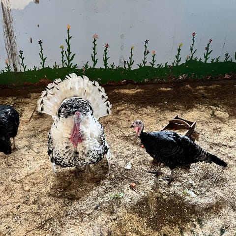 Kaksi viimekesäistä kalkkuna ukkoa etsivät uutta kotia. Väreiltään musta ja vaaleanharmaa. Ovat hyvänkokoisia jo