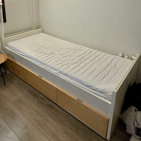 Uusi sänky, hädin tuskin kaksi kertaa nukuttu. Ostettu varalle muuttohässäkän välissä, ja nyt ylimääräisenä. Vain nouto.