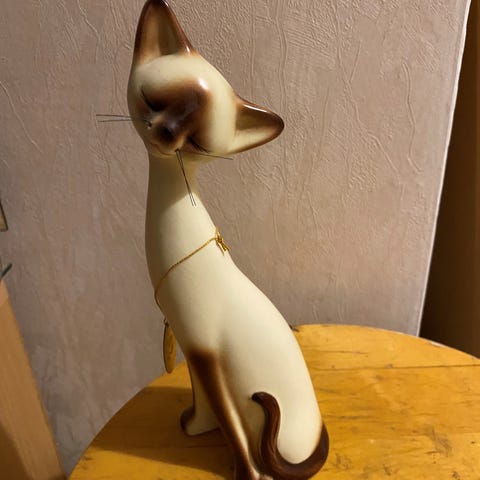 Koristeellinen musta egyptilainen kissapatsas, jossa on yksityiskohtainen kaulakoru ja korvakoru. Patsas on valmistettu metallimateriaalista ja esittää istuvaa kissahahmoa. Sopii sisustuselementiksi ja koristeeksi erilaisiin tiloihin.