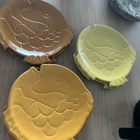 Myyntiin 4kpl isoja kala ruokalautasia pituus 26cm ja leveys 21cm ja 4kpl pienempiä kalalautasia pituus 19cm ja leveys 17cm. Kaikki Hyvässä kunnossa. Nouto tai postitus onnistuu