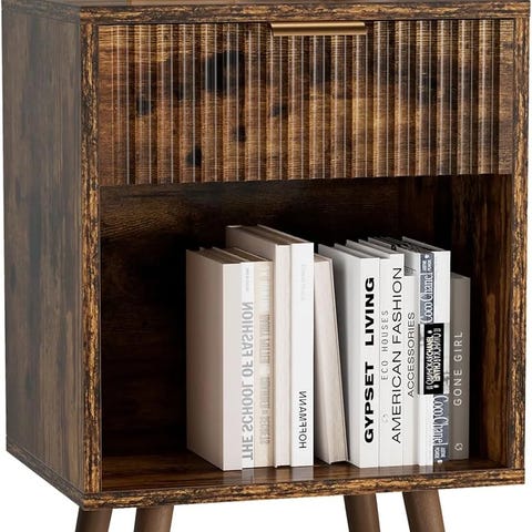 Myyntiin ajaton ja näppärä pieni puinen yöpöytä vetolaatikolla!