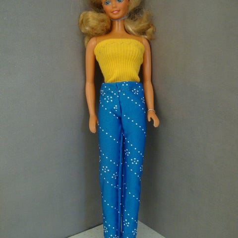 Uusia, käsintehtyjä vintage-tyylisiä barbin vaatteita. Vaatteet kestävät leikkiä ja väljempinä helpompia pienen leikkijän pukea kuin aidot barbien asut, tarrakiinnitys. Sopivat n.29.cm nukeille, myös retro-barbeille. Savuton, homeeton ja eläimetön talous. Kuvien barbie nuket eivät ole myynnissä! Hinta 5e/kpl (+postimerkki).