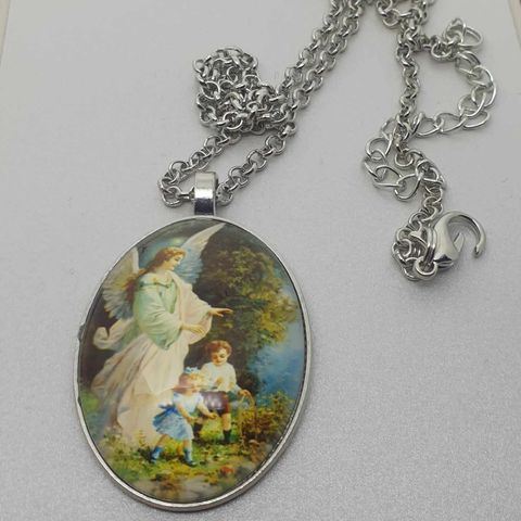 Iso siivet ruusulla kaulakoru+vahva ketju, riipus 3,5cm.