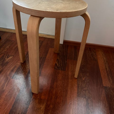 Vanha jakkara jonka korkeus säädettävissä pyörittämällä.