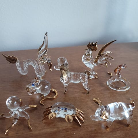 Lasiesineet, jotka esittävät erilaisia eläinhahmoja. Tee tarjous. Noutomyynti Hki Myllypuro tai postitan jos maksat myös postit.