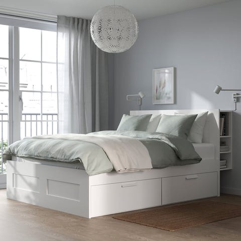 Bed with drawers. The handles on one side of the drawers were removed because the bed was placed against the wall, I couldn't find them, but they are sold in Ikea as spare parts.