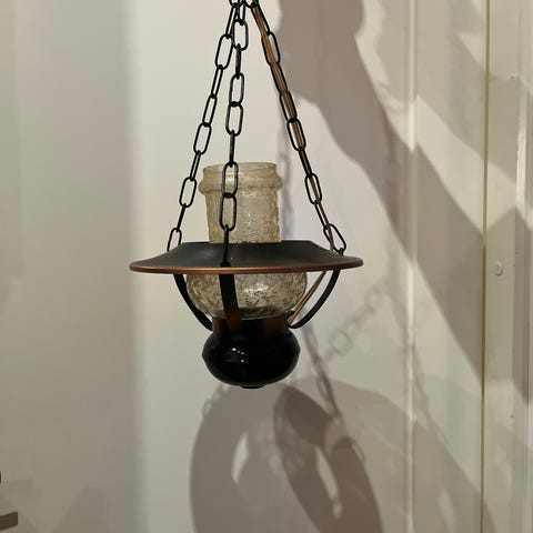 Vanha valaisin, jossa on kolme säädettävää lamppua.