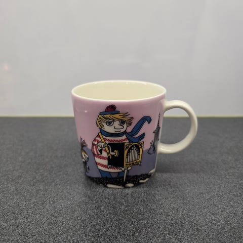Myydään hyväkuntoinen vuorilla muumimuki.