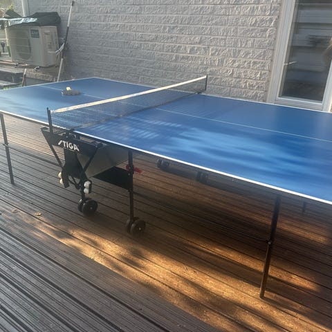 Erittäin hyväkuntoinen pingispöytä,pelattu ainoastaan sisätilassa,mukaan 2kpl mailoja ja jokunen pallo,uuden hinta kaikkinensa reilusti yli 300,muutaman vuoden vanha
