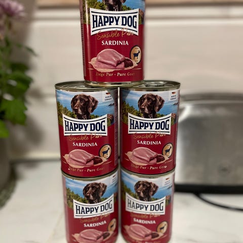 Happy Dog Sensible Pain koiranruoka 400 gramman tölkki, sisältää naudanlihaa. Tuotettu Saksassa.