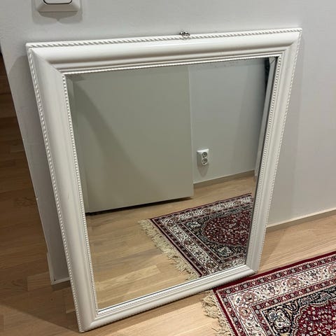 Siistikuntoinen peili. Kiinnitykset joko pystyasentoon tai vaakaan.