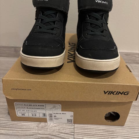 Viking lasten talvikengät, koko 35, suunniteltu pojille. Kengät on valmistettu kestävistä materiaaleista ja ne tarjoavat suojaa kylmiltä ja kosteilta olosuhteilta. Mukana tarrakiinnitys helpottamassa pukemista ja säätämistä.