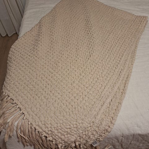 Myytävänä valkea torkkupeitto. Sopii mainiosti moneen muuhun käyttöön esim sisustuspeittona, sänkypeittona tai jopa verhona. Kevyttä, ilmavaa kangasta joka venyy.
