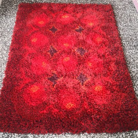 Erittäin hyväkuntoinen ja siisti Kirsti Ilvessalon suunnittelema "Metsässä palaa" villaryijy, korkeus 160 cm, leveys 105 cm. Ryijyssä on väreinä valkoinen, beige, vaaleanharmaa, tummanharmaa, musta, vihreä, sammaleenvihreä, kolmea eri punaista. Ryijy on ollut kuivassa ja lämpimässä , tuuletettu pakkasessa - ei hajuja, eläimetön ja savuton koti.