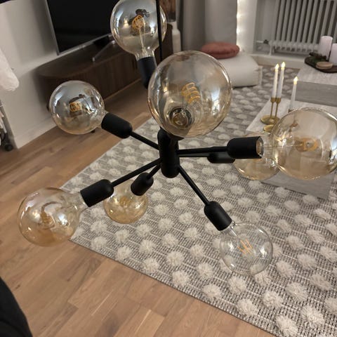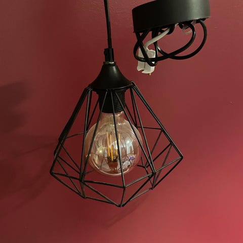 Myydään musta kattovalaisin.sisältä valkoinen.polttimo mukaan.korkeus 24cm,yläosan halkaisija 23cm.