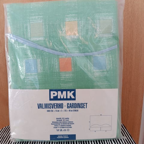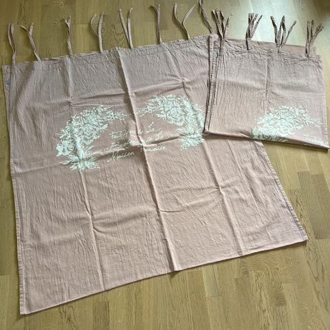 Mustat puuvillaiset solmimisnauhaverhot Jotexilta (2 kpl).