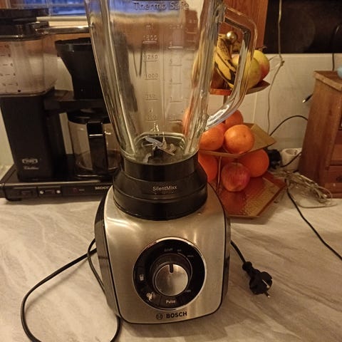 Käytetty mutta moitteettomasti toimiva ja kaikinpuolin ehjä tehosekoitin.