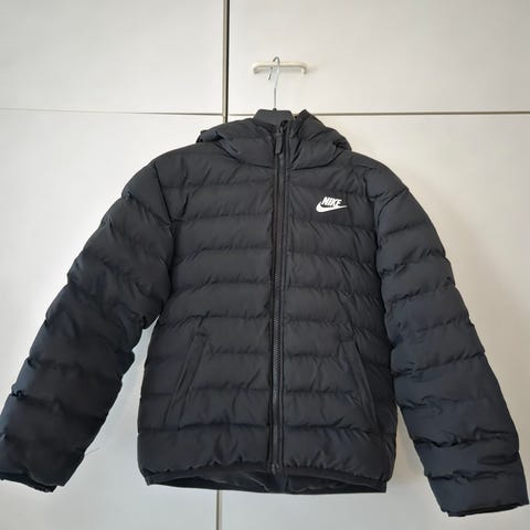 Musta Nike toppatakki. Hyvä käytetty kunto, ks. Kuvat, Takaa naarmua ja reikä, ei haittaa käyttöä tai reiän voi peittää vaatelaastarilla.