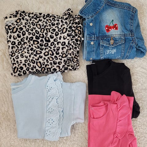 Uutena ostetut ja yhdellä lapsella käytössä olleet vaatteet.