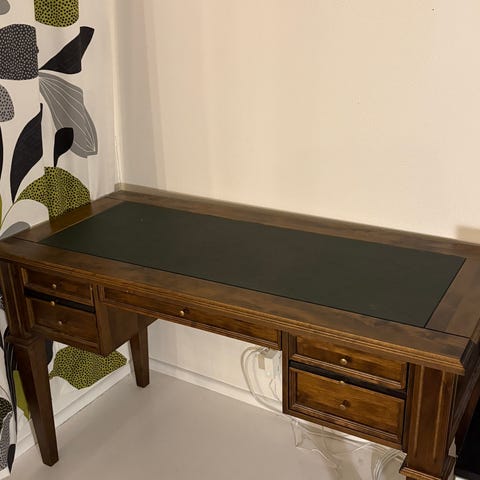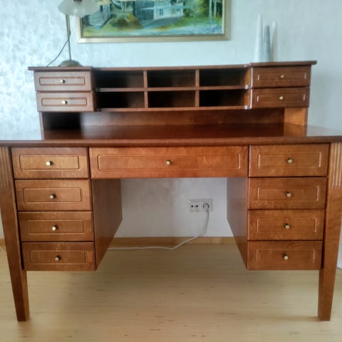 Hyvä kuntoinen Björkman työpöytä irroitettavalla ylätasolla. Korkeus ylätason kanssa 108 cm. Väri ruskea kastanja. Uutena kokonaisuuden hinta noin 1.200 euroa.