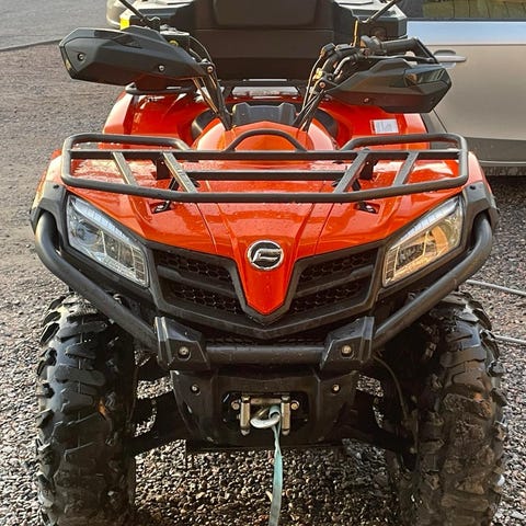 Tökkiikö lumityöt? Myydään vähäisellä käytöllä pihan lumitöissä ollut 2024 vuosimallin CFMoto C Force 520S EPS traktorimönkijä puskulevyllä.