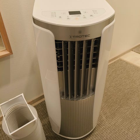 Täysin toimiva Nediksen ilmastointilaite. Käytön jälkiä. Mukaan ilmastointilaitteen putki, jonka muovi on halkeillut. Sen takia ympärillä teippiä.