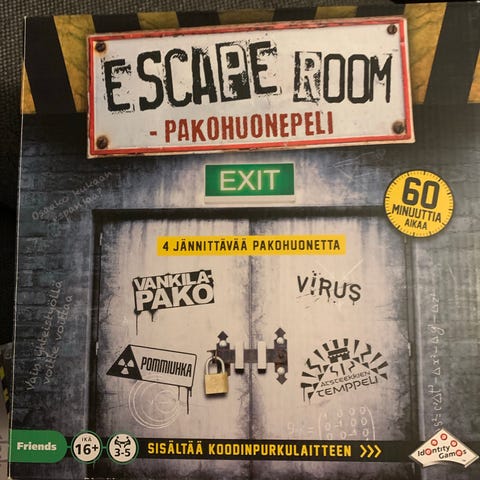 ToyRock Escape Room Pakohuonepeli Family Aikamatka on lautapeli, joka sisältää koodinpurkulaitteen ja tarjoaa pakohuonepelin kokemuksen. Peli on suunniteltu 3-5 pelaajalle, ja pelin kesto on noin 60 minuuttia. Pelissä käytetään ajanottoa ja ääniefektejä, ja se soveltuu perhekäyttöön. Pelin teemat liittyvät aikamatkustukseen, ja se sisältää erilaisia pulmia ja arvoituksia ratkaistavaksi. Täysin avaamaton, saatiin näitä kaksi, niin ei pelattu toista.