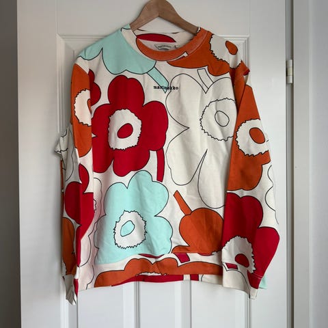 Myydääb usoksi jäänyt erittäin hyvänkuntoinen ha miellyttävä Marimekon collegepaita ja housut naisille, koko XL, väriltään liila Materiaalina puuvilla. Setissä on collegepaita ja housut, joissa molemmissa on Unikko-kukkakuvio. Järkevät tarjoukset otetaan vastaan