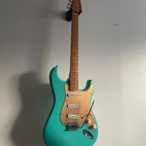 Squier sähkökitarat, sininen väri, vaalean puun kaula.