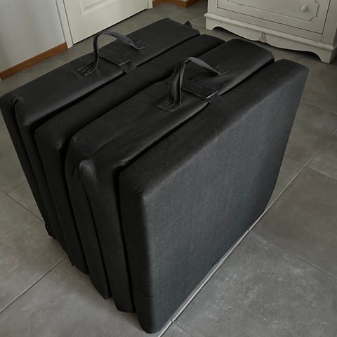 Myyn remontin tieltä kokoontaitettavan kolmiosaisen patjan, jossa jouluvieraiden oli hyvä nukkua.