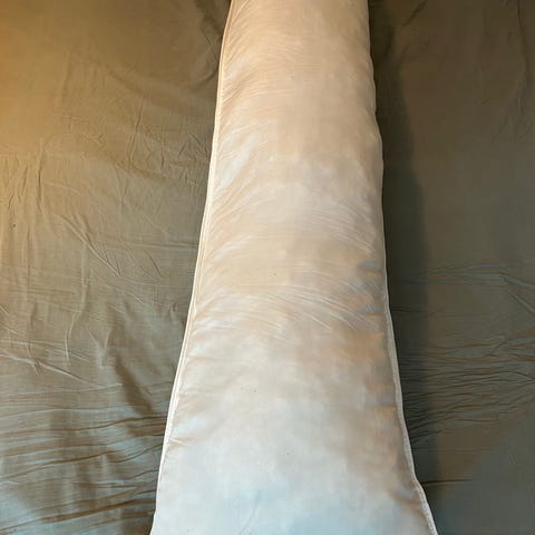 Iso raskaus/imetystyyny Momcozylta. Mitat noin 125cm x 35cm. Päällisen pinta hieman pesussa nyppyyntynyt, muuten tyyny on hyvässä kunnossa.