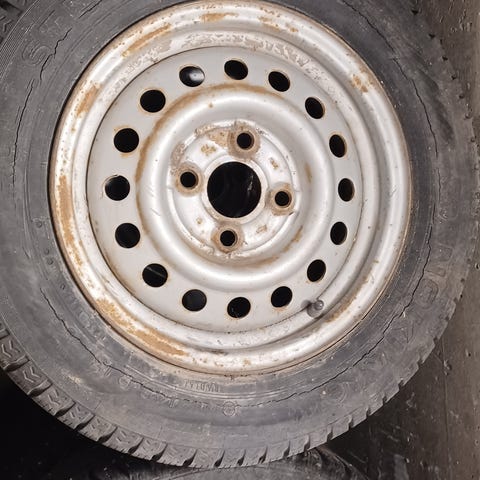 Kuvan mukaiset 13" peräkärryn vanteet renkaineen ylimääräisenä. Vanteet ok, vähän pintaruostetta. Renkaat halkeilleet mutta pitää vielä ilmat sisällä.