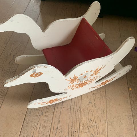 Tästä seuraavalle ihana vanha keinutuoli. Mukavan pienikokoinen. Vaatii pientä huolenpitoa, jos haluaa kunnostaa tämän kuin uudeksi. Tehty suunnilleen 40-50 -luvulla.