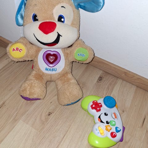 Fisher-Price Laugh & Learn lasten lelu, joka sisältää kirjaimia, numeroita ja värejä opettavia toimintoja. Sopii 6-36 kuukauden ikäisille lapsille. Lelussa on värikkäitä painikkeita ja pyöritettäviä osia, jotka tukevat lapsen oppimista ja motorisia taitoja.