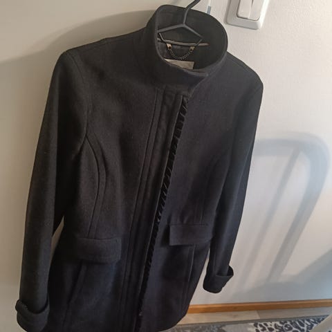 Vuoriton villakangastakki, joka on erinomainen välikausitakki! Nappikiinnitys ja taskut. Malli on suora ja sopivan rento.