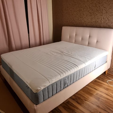 Myydään vierassänkynä ollut Ikeasta ostettu sängynrunko (VEVELSTAD) + patja (VALEVÅG, kiinteä) sekä Jyskistä ostettu sijauspatja. Sijauspatjan päällä käytetty aina patjansuojusta. Kunto erittäin hyvä.