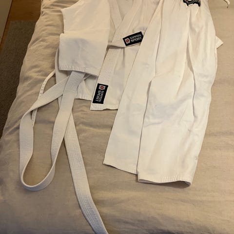 Adidas lasten karateasu, koko 140. Valkoinen väri, oikein siisti käytetty kunto.
